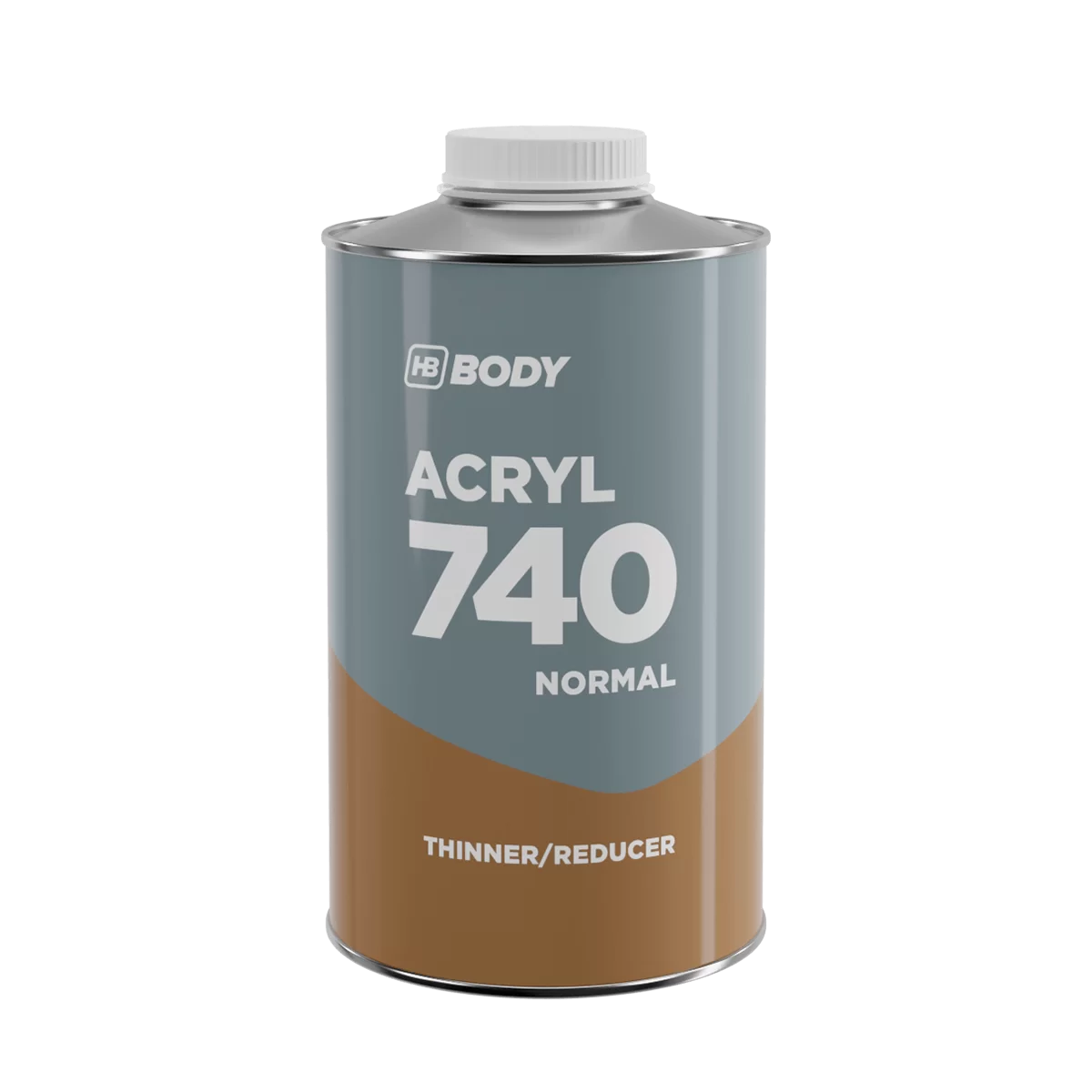 Акрилен разредител Body 740 е специален продукт, подходящ за разреждане на материали съдържащи акрилни смоли, като всички видове акрилни двукомпонентни бои, както и на повечето конвенционални бази, перли и металици. Подходящ е за разреждане на акрилни високо запълващи грундове и 2К покрития. Осигурява отлично разреждане и разливност на материалите без да удължава времето за изсъхване. Може да се използва и за почистване на бояджийски инструменти използвани при приложения на акрилни материали. НЕ СЪДЪРЖА Рециклирани разредители.